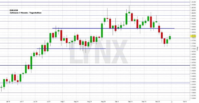 Am Montag werden am Vormittag eine Reihe von Einkaufsmanagerindizes für das verarbeitende Gewerbe im September veröffentlicht; Die Indizes für Frankreich um 09:50 Uhr, für Deutschland um 09:55 Uhr und für die Eurozone um 10:00 Uhr. Die EU-Arbeitslosenzahlen für den August folgen um 11:00 Uhr. Am Nachmittag wird aus den USA um 15:45 Uhr der Markit-Einkaufsmanagerindex für das Verarbeitende Gewerbe im September bekannt gegeben, um 16:00 Uhr folgt das Pendant von ISM. Die US-Bauausgaben im August stehen um 16:00 Uhr zur Veröffentlichung bereit.