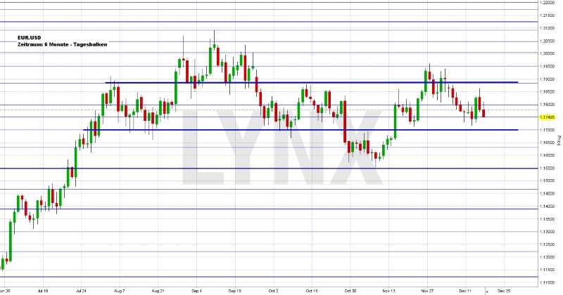 Der EUR.USD konnte sich in der vergangenen Handelswoche weder auf der Kaufseite noch auf der Verkaufsseite nennenswert bewegen. Hauptsächlich schwankte das Währungspaar um die Marke von 1,1775, um das Wochentief im Bereich von 1,1720 und um das Wochenhoch nahe der Marke von 1,1860. Der Wochenschlusskurs lag an der eingezeichneten Unterstützung von 1,1750 und somit etwas unterhalb vom Vorwochenschlusskurs. Für den EUR/USD wird es in der kommenden Handelswoche sehr spannend, welche Richtung sich durchsetzen kann. Für die Aufwärtsseite sollte sich der Markt erneut über den aktuellen Widerstand von 1,1800 bewegen, um sich weiterführend in Richtung 1,1880 vorarbeiten zu können. Kurse unterhalb von 1,1800 sind aus aktueller Sicht eher seitwärtstendierend. Erst ein nachhaltiger Bruch des Unterstützungsniveaus von 1,1700 könnte der Abwärtsseite etwas Schub geben. Kurse in Richtung 1,1600 wären gegebenenfalls denkbar.