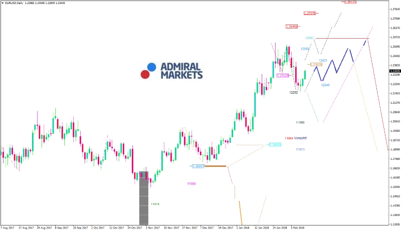 Der EUR könnte zunächst versuchen, sich über der 1,2360 zu etablieren. Gelingt dies, so könnte er dann versuchen, die 1,2397/99 und dann die 1,2405/07 bzw. die 1,2420/22 zu erreichen. Läuft der EUR bis in den Bereich der 1,2420/22, so könnten sich hier Rücksetzer einstellen. Bei einem dynamischen Erreichen dieses Levels könnte der EUR dann auch die 1,2438/40, die 1,2450/52, die 1,2465/67 und dann die 1,2472/74 erreichen. Schafft er es, die 1,2472/74 zu überwinden, so wären die nächsten Anlaufziele bei 1,2481/83, bei 1,2493/95 bzw. bei 1,2502/04 zu suchen. Über der 1,2502/04 könnte der EUR dann die 1,2514/16, die 1,2521/23, die 1,2535/37 und dann die 1,2544/46 erreichen. Eventuell wäre auch ein Anlaufen der 1,2556/58 denkbar.