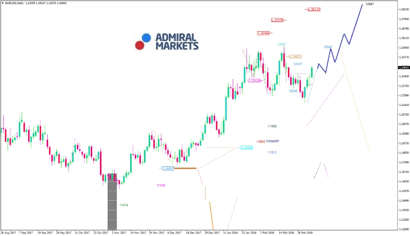 Der EUR könnte zunächst versuchen, sich über der 1,2420 zu etablieren. Gelingt dies, so könnte er dann versuchen, die 1,2430/32, die 1,2444/46 und dann die 1,2451/53 zu erreichen. Geht es über die 1,2451/53 wären die 1,2465/67, die 1,2476/78, die 1,2487/89 und dann die 1,2496/98 bzw. die 1,2505/07 die nächsten Anlaufziele. Mit einem Überwinden der 1,2507/07 wäre der Weg dann an die 1,2517/19, an die 1,2529/31, an die 1,2445/47 und dann an das JH frei. Sollte der EUR es bis in den Bereich der 1,2550/54 schaffen, so könnten sich hier Rücksetzer einstellen, im Zweifel könnte die Aufwärtsbewegung hier auch ihr Ende finden. Wird der Bereich aber dynamisch und mit Momentum angelaufen, so wären die 1,2566/68, die 1,2577/79, die 1,2584/86 und dann die 1,2594/96 bzw. die 1,2602/04 die nächsten Anlaufziele. Bei ausgeprägter Dynamik wäre auch ein Erreichen der 1,2614/16, der 1,2622/24 und der 1,2631/33 vorstellbar.