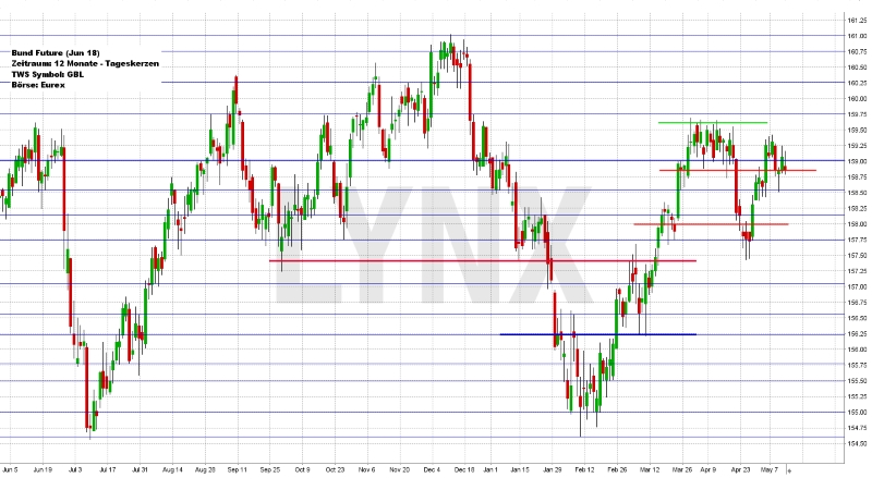 Der Deutsche Aktienindex beendete den Xetra-Handel am Freitag mit einem Minus von 0,17 Prozent bei 13.001,24 Punkten. Das Rekordhoch liegt bei 13.596,89 Punkten. Das Handelsvolumen betrug 3,371 Mrd. Euro. Der XDAX notierte um 22:15 Uhr mit 12.996,56 Punkten und der FDAX schloss an der EUREX mit 12.998,00 Punkten. Der Dow Jones beendete den Handel mit 24.831,17 Punkten und die Rekordmarke liegt bei 26.616,71 Punkten. Der NASDAQ 100 notierte zum Handelsschluss bei 6.952,56 Punkten und der Rekordstand beträgt 7.186,09 Punkte. Der breit gefasste S&P 500 schloss mit 2.727,72 Punkten und der Rekordstand liegt bei 2.872,87 Punkten. Der Euro notierte nach US-Börsenschluss bei 1,1941 US-Dollar. Eine Feinunze Gold war am Spotmarkt für 1.319,30 US-Dollar zu haben und Rohöl der Nordseesorte Brent kostete zum US-Handelsschluss im Juli-Kontrakt 77,12 US-Dollar das Fass. Der Euro-Bund-Future schloss am Freitag an der EUREX mit 158,92 Punkten. Die Rendite für zehnjährige Bundesanleihen liegt aktuell bei 0,55 Prozent. Der Spread zwischen zehnjährigen deutschen Bunds und zehnjährigen US-Staatsanleihen (2,97 Prozent Rendite) liegt derzeit bei 242 Basispunkten. Die Bundesfinanzagentur emittiert am Montag im Rahmen einer Aufstockung Geldmarktinstrumente mit einer Laufzeit von 6 Monaten und einem Volumen von 2,0 Mrd. EUR, sowie am Mittwoch im Rahmen einer Aufstockung Kapitalmarktinstrumente (Bund) mit einer dreißigjährigen Laufzeit und einem Volumen von 2,0 Mrd. EUR.
