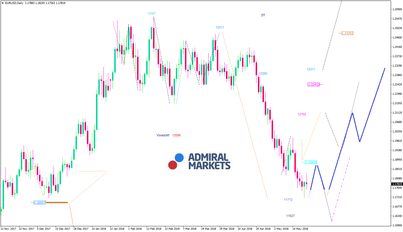 Politisch verlief die vergangene Woche weitestgehend ruhig und der EURUSD setzte bis auf einige kleine Korrekturen seine Talfahrt fort. Es bleibt abzuwarten, ob bspw. die Regierungsbildung in Italien oder Donald Trumps Iran-Sanktionen einen bleibenden Eindruck auf den Finanzmärkten hinterlassen. Gerade letzteres ist auch für die EU-Wirtschaft von starkem Interesse.