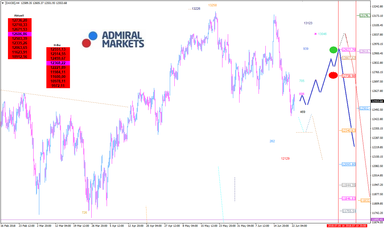 • Tagesschlusskurs-Marken sind: 13.258 und 12.738