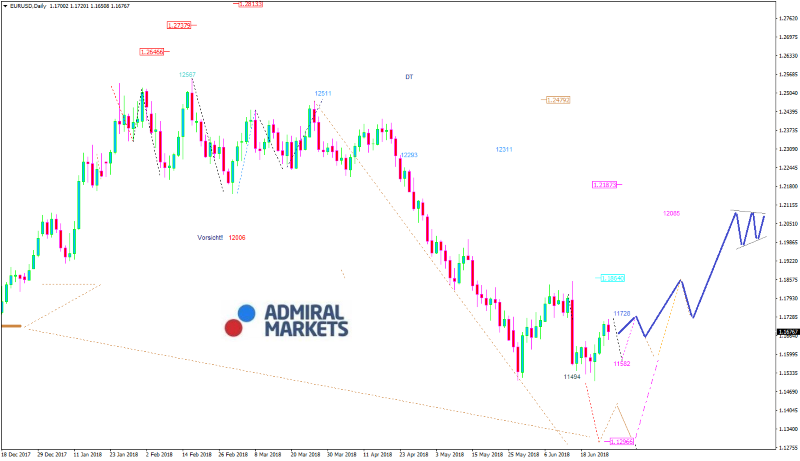 Der EUR hat in den letzten Handelstagen unter dem anhaltenden Zollstreit und den damit sich eintrübenden Wettbewerbsbedingungen für die europäische Wirtschaft gelitten. Zudem kommen noch die politischen Streitigkeiten in Europa in Bezug auf die Asylpolitik. Einige Beobachter befürchten sogar das Auseinanderbrechen der EU. Die aktuellen politischen Spannungen zeigen aber auch, wie sehr sich das politische Klima in Rekordzeit geändert hat. Damit rückt auch die Schuldenpolitik wieder in den Vordergrund. Griechenland kommt nach wie vor nicht voran mit der Sanierung des Haushaltes. Experten befürchten sogar, dass das Land noch tiefer in die Schuldenkrise rutscht wie es schon ist; trotz Erleichterungen im Schuldendienst, trotz eines 100 Mrd. Schuldenschnitts vor einigen Jahren, vor allem von privaten Unternehmen. Die Frage ist, wie sich Italien jetzt aufstellen möchte. Die jetzt amtierende Regierung hat ja einiges an Leistungen in Aussicht gestellt, die nur schwerlich zu finanzieren sind. Italien ist da eine Nummer größer – too big too fail. Das Schicksal und die Zukunft des EUR entscheidet sich nicht in Athen sondern in Rom und dass vielleicht schon schneller als von vielen gedacht oder vermutet. Diese Rahmenbedingungen sprechen aktuell fundamental gegen einen weiteren, signifikanten Anstieg des EUR.