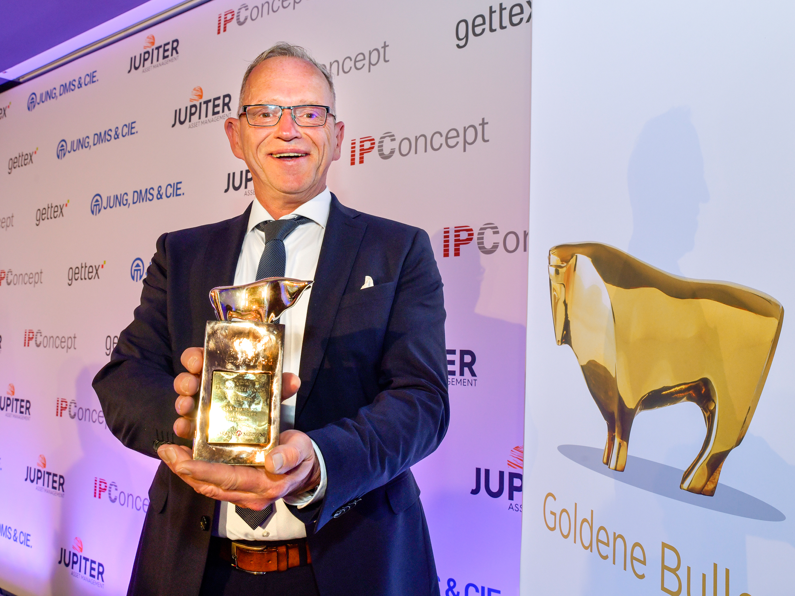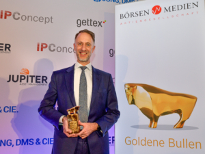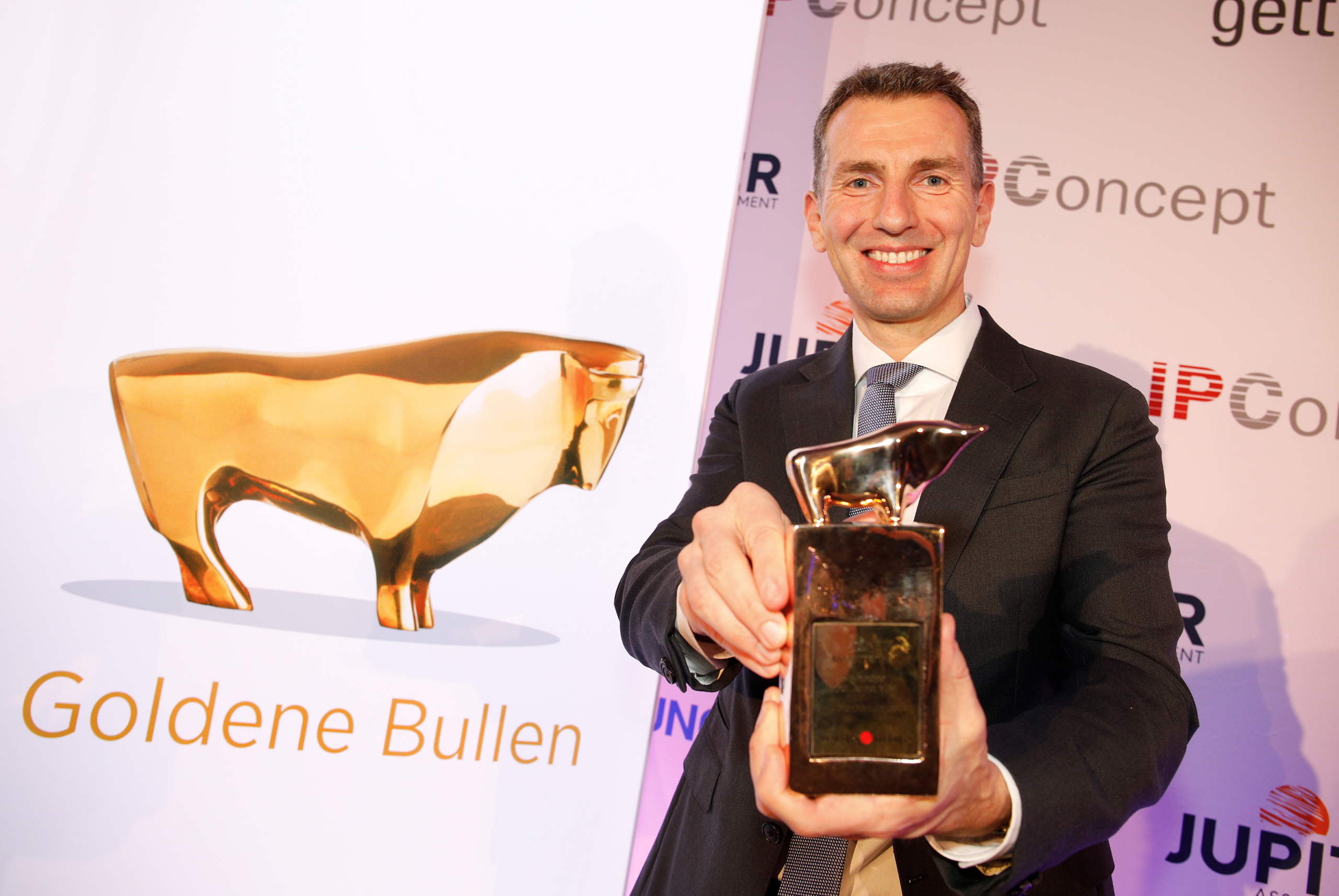 Ein weiterer glanzvoller Höhepunkt der Preisverleihung in München war die Auszeichnung von Dr. Jan Ehrhardt von der DJE Kapital AG als „Fondsmanager des Jahres“. Seine umsichtige und kluge Anlagestrategie hat sich ausgezahlt: Die Fonds DJE – Zins & Dividende und DJE – Dividende & Substanz haben gerade in turbulenten Marktphasen Stabilität und Ertragsstärke bewiesen. Mit dem Goldenen Bullen werden Fondsmanager ausgezeichnet, die durch eine konsequente Anlagestrategie und eine herausragende Performance überzeugen. Bereits vier Milliarden Euro haben ihm Anleger anvertraut, die Wert auf stabile Renditen legen und große Risiken vermeiden wollen.