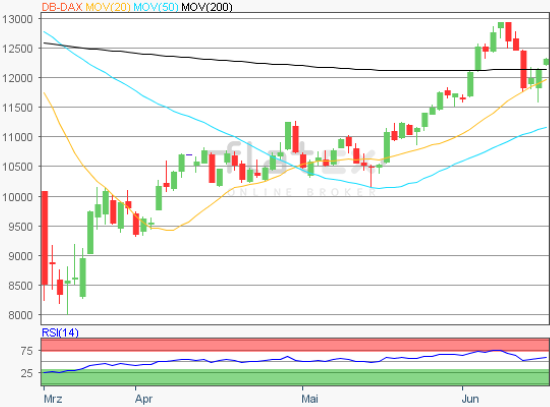 Der Deutsche Aktienindex befand sich zum Wochenbeginn regelrecht auf einem Achterbahnkurs. In der ersten Hälfte des Tages fiel der deutsche Leitindex am Montag sogar bei auf ein Tagestief von 11.597,82 Punkte und konnte sich bis zum Xetra-Handelsende schrittweise beeindruckend erholen.