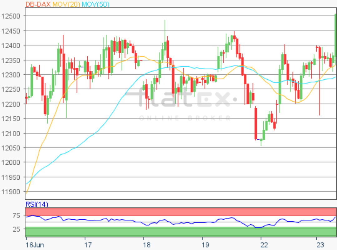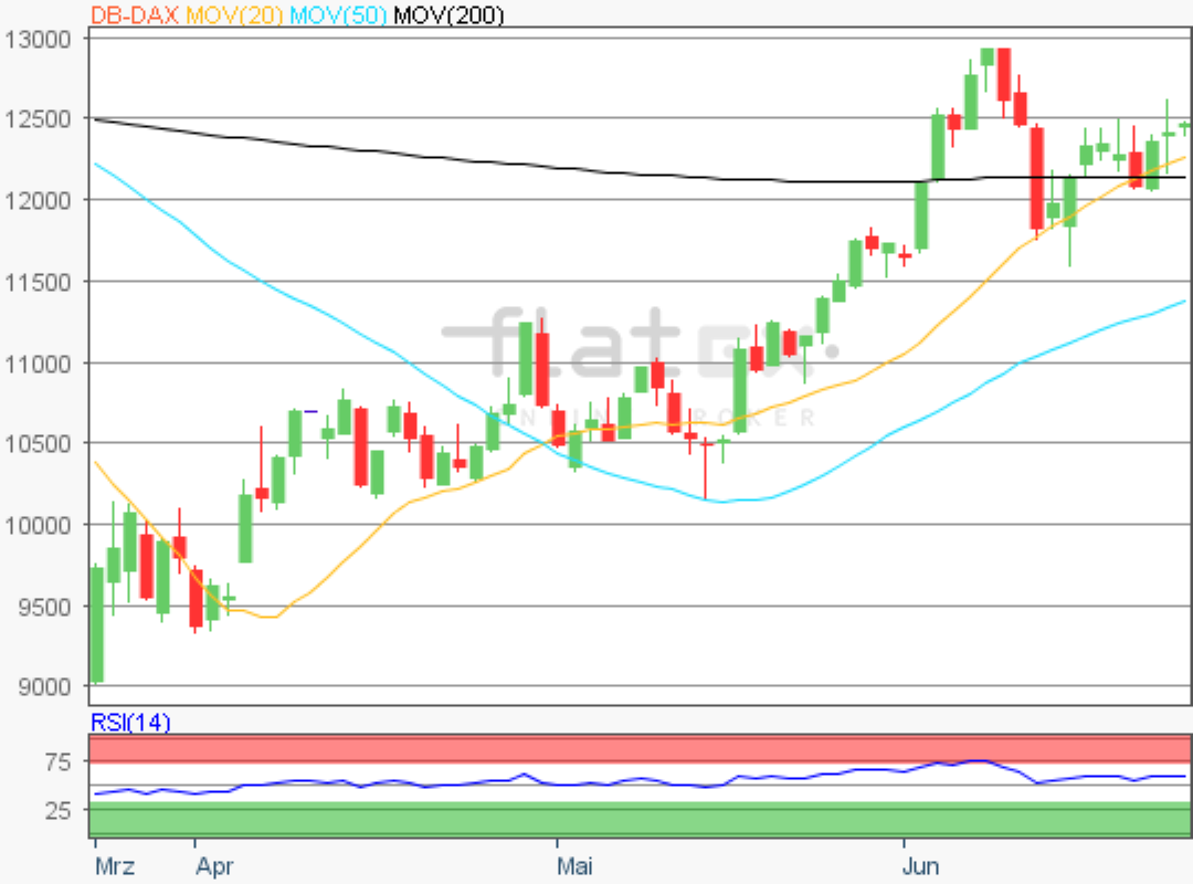 Der Deutsche Aktienindex beendete den Xetra-Handel am Dienstag mit einem kräftigen Kursgewinn von 2,13 Prozent bei 12.523,76 Punkten. Das Handelsvolumen via Xetra und Börse Frankfurt betrug rund 4,64 Milliarden Euro.