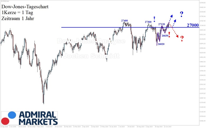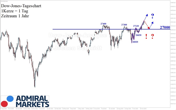 Dow Jones Analyse: Es bedarf nur noch eines kleinen Schrittes über die 27.120, um die nahe liegenden Hochs bei 27.300/27.400 anzuhandeln.