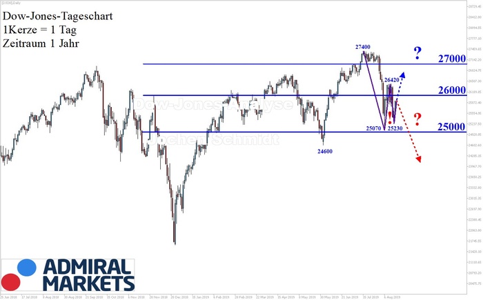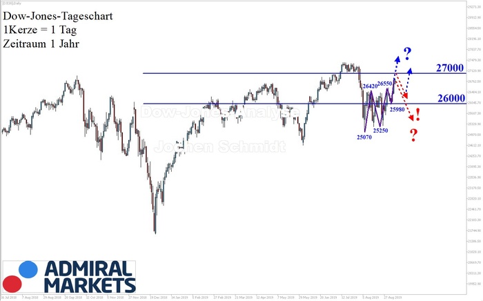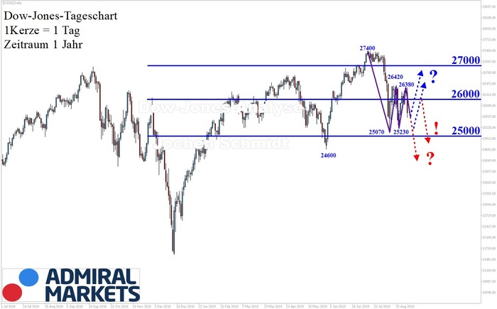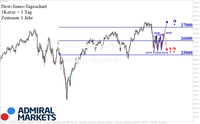 Sowohl der Hoch Bereich bei 26.420-26.380 als auch der Tiefbereich bei 25.230-25.070 werden bei Über- bzw. Unterschreitung Signalwirkung haben.
