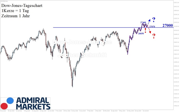 Solange sich die Kurse über der 27.000-Punkte-Marke halten, bleibt der Trend intakt und kann durchaus wieder nach Norden ansteigen.