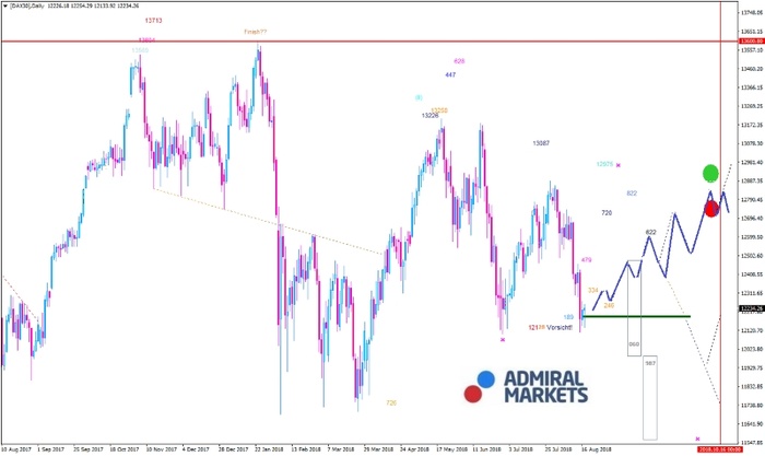 Mit dem Aufsetzen auf der 25.000er-Marke und den nachfolgenden Käufen scheint die Fortsetzung des Aufwärtstrends recht wahrscheinlich. Kursanstiege bis oder auch über die 25600 sind gut denkbar.