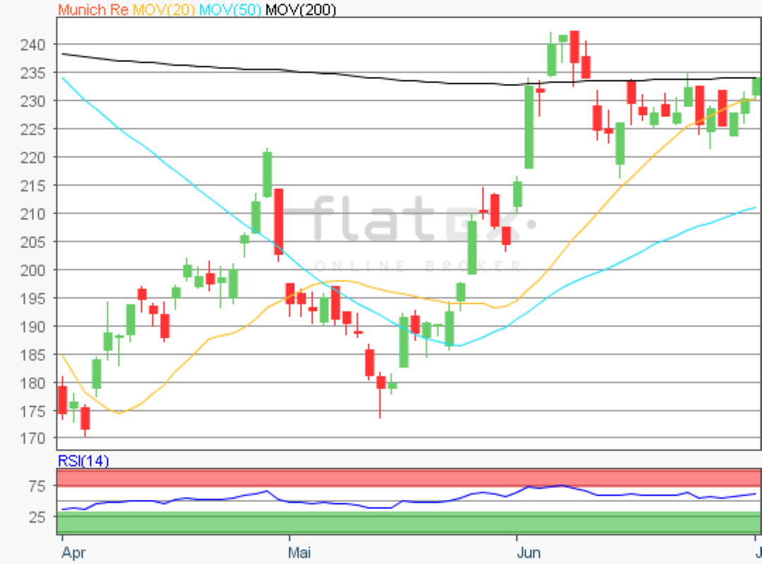 Die Aktie des DAX-Konzerns Münchener Rück notierte am 05. Juni 2020 auf einem letzten Zwischenhoch von 242,70 Euro.