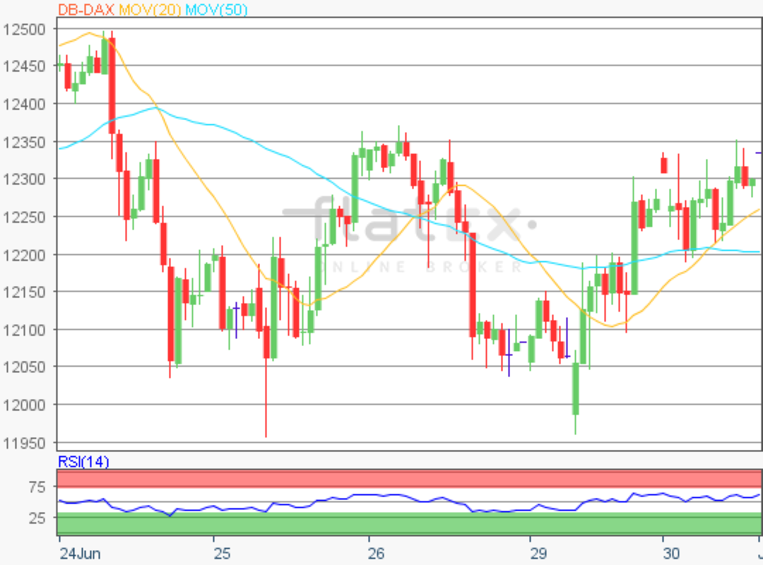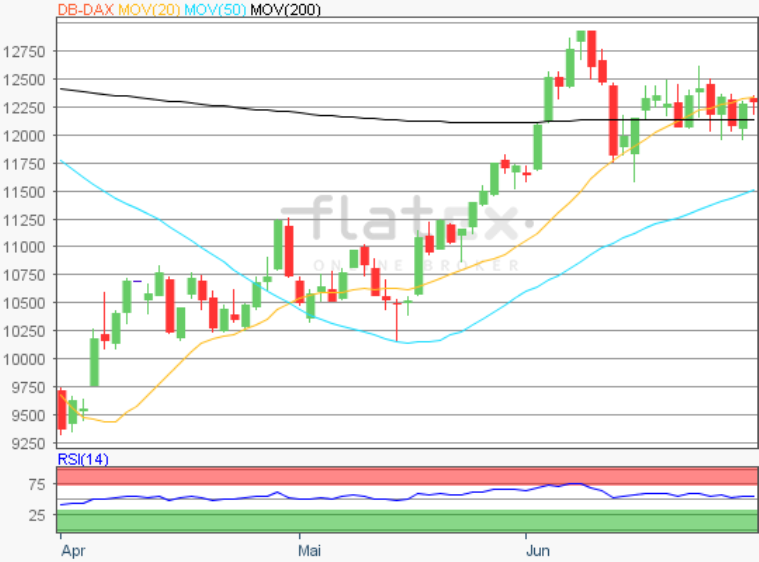 Der Deutsche Aktienindex konnte am Dienstag an seinen Vortagesgewinn anknüpfen und schloss via Xetra mit einem Kursplus von 0,64 Prozent bei 12.310,93 Punkten. Das Handelsvolumen via Xetra und Börse Frankfurt betrug rund 3,78 Milliarden Euro.