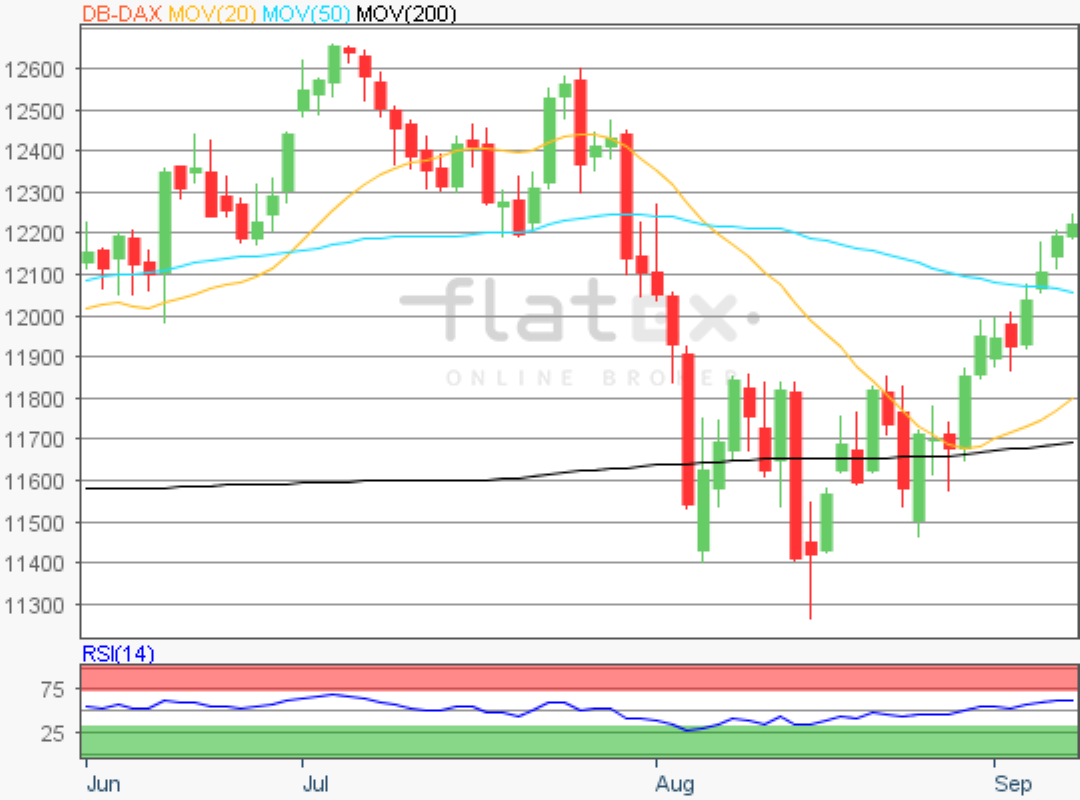 Der Deutsche Aktienindex setzte auch zum Wochenbeginn seine Aufwärtsbewegung fort und beendete den Xetra-Handel am Montag mit einem Kursplus von 0,28 Prozent und 12.226,10 Punkten.