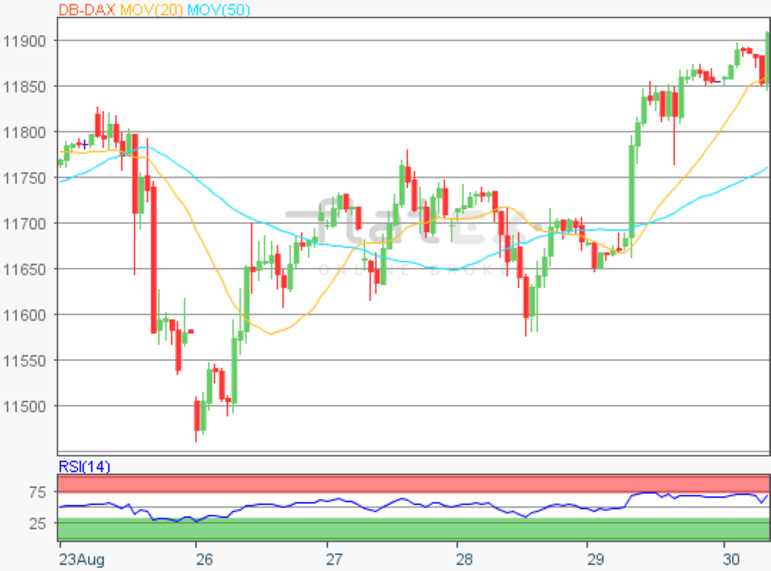 Der Deutsche Aktienindex beendete den Freitag mit einem Kursgewinn von 0,85 Prozent bei 11.939,28 Punkten. Das Handelsvolumen via Xetra und Börse Frankfurt betrug rund 3,30 Mrd. Euro.
