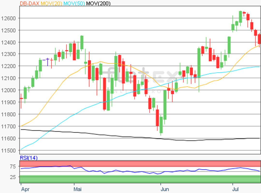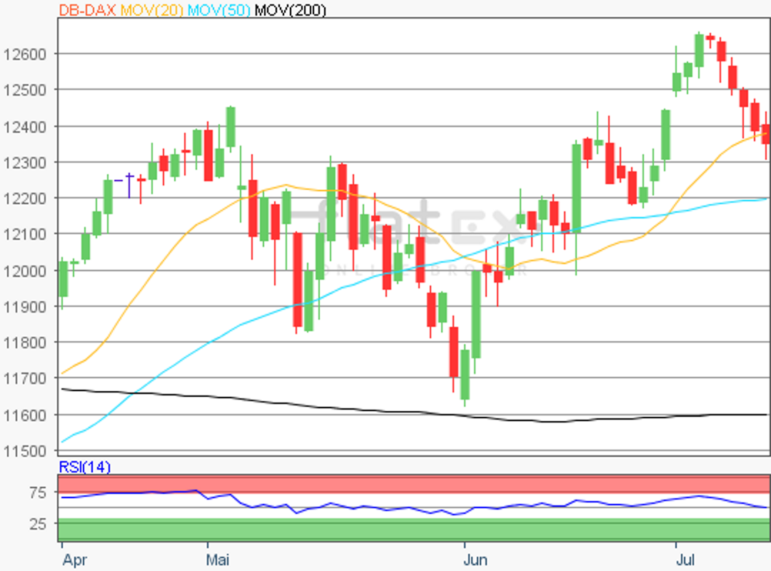 Der Deutsche Aktienindex wies am Donnerstag einmal mehr einen Kursverlust auf und schloss via Xetra mit einem Minus von 0,33 Prozent bei 12.332,12 Punkten. Das Handelsvolumen via Xetra und Börse Frankfurt betrug rund 3,08 Mrd. Euro.