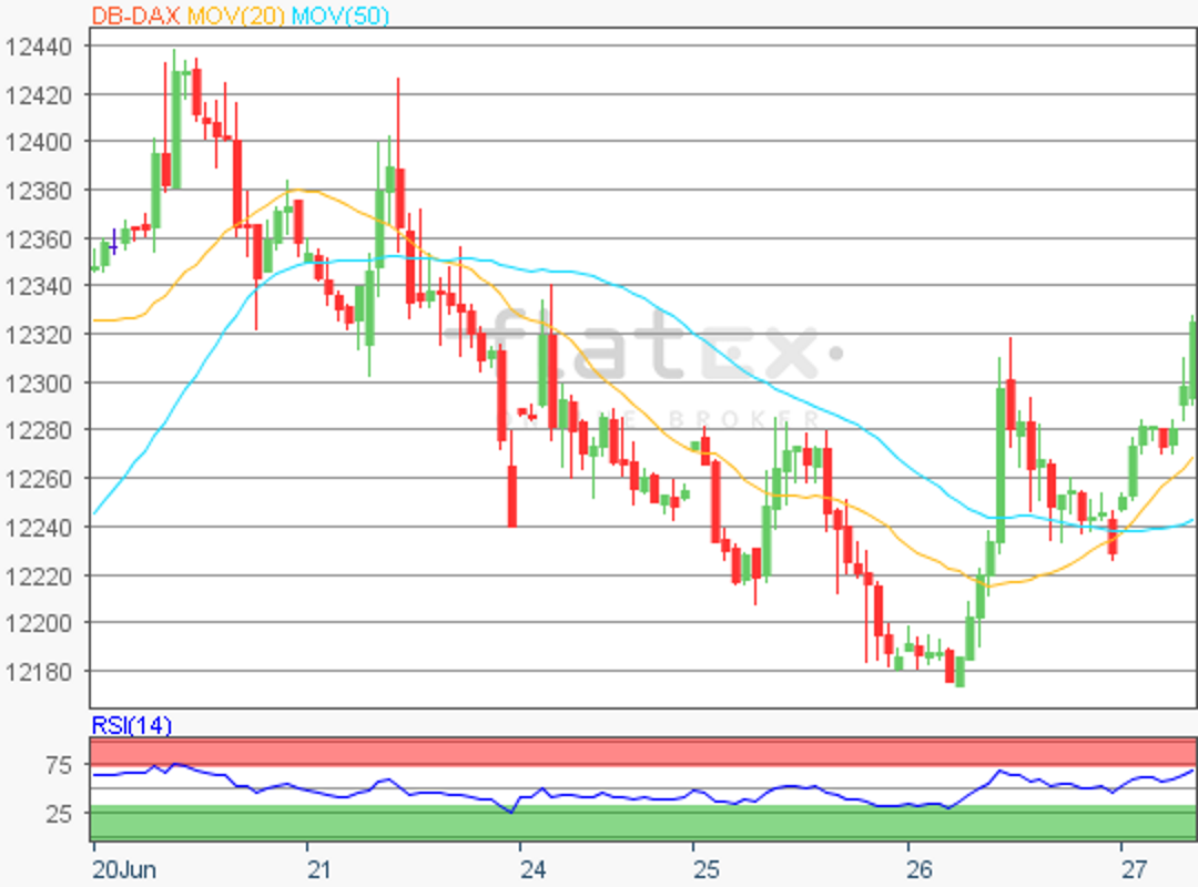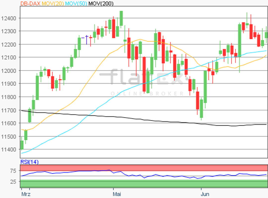 Der Deutsche Aktienindex durchlief am Donnerstag eine Tagesspanne von rund 125 Indexpunkten und schloss via Xetra mit einem Kursplus von 0,21 Prozent bei 12.271,03 Punkten. Das Handelsvolumen via Xetra und Börse Frankfurt betrug rund 3,55 Mrd. Euro.