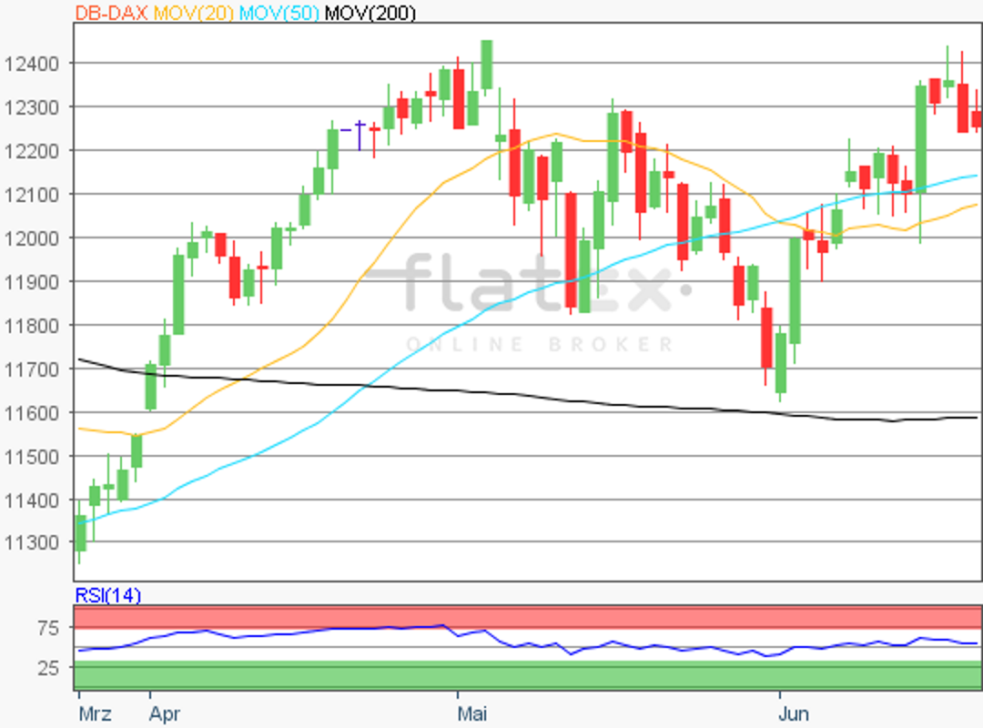 Der Deutsche Aktienindex startete mit Abgaben in die neue Handelswoche. Zum Xetra-Schluss notierte der DAX mit einem Abschlag von 0,53 Prozent und 12.274,57 Punkten. Das Handelsvolumen via Xetra und Börse Frankfurt betrug rund 3,26 Mrd. Euro.