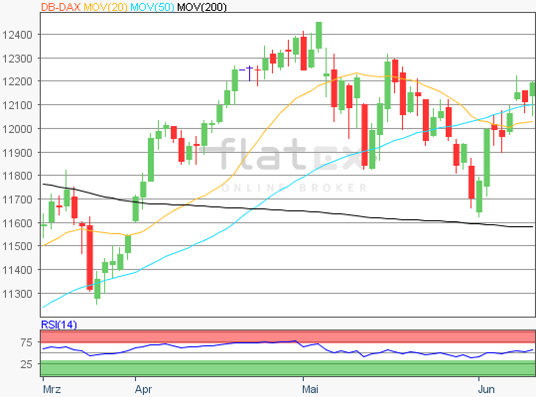 Der Deutsche Aktienindex ging am Donnerstag mit einem Kursgewinn von 0,44 Prozent bei 12.169,05 Punkten aus dem Xetra-Handel. Das Handelsvolumen via Xetra und Börse Frankfurt betrug rund 2,80 Mrd. Euro und lag wie am Vortag unterhalb des Jahresdurchschnitts.