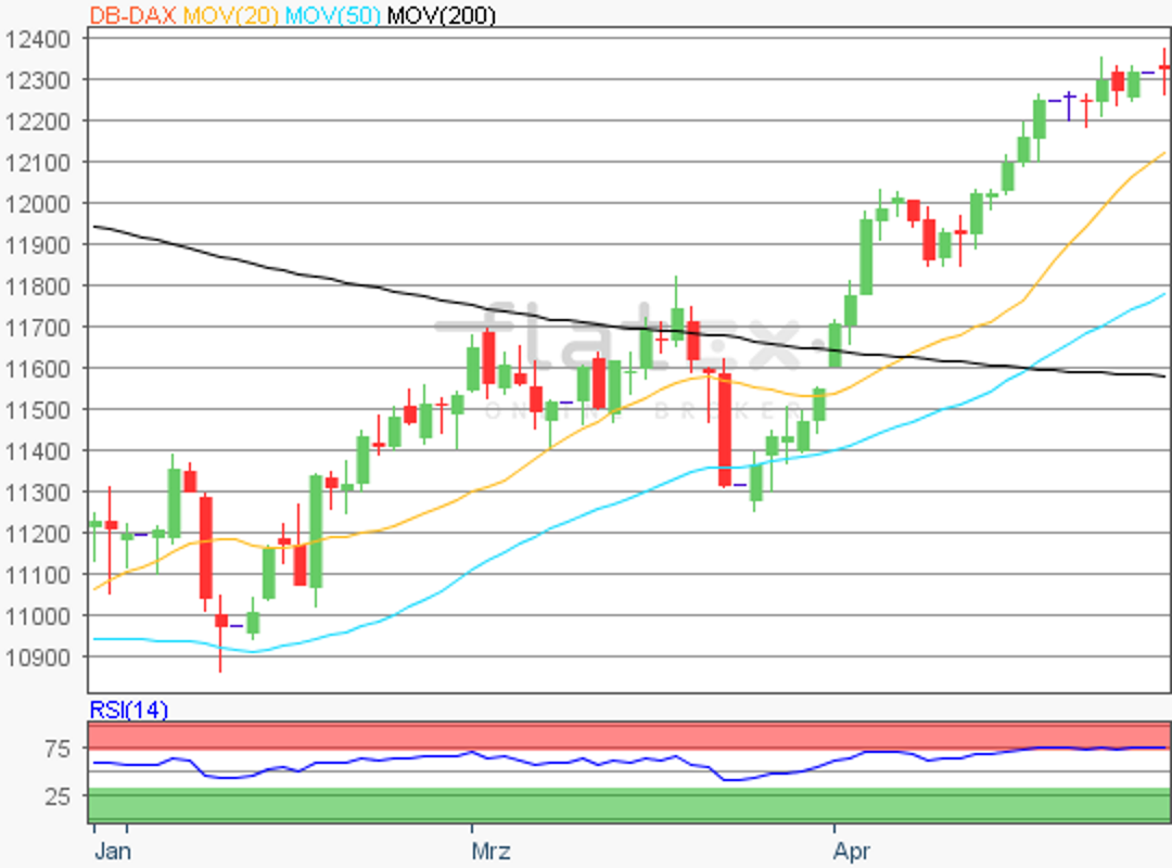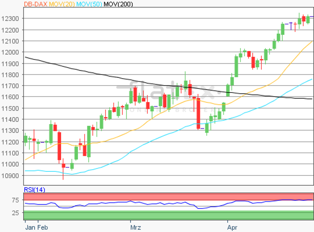 Der Deutsche Aktienindex konnte zum Wochenauftakt leicht zulegen und schloss am Montag via Xetra-Handel mit einem Kursplus von 0,10 Prozent bei 12.328,02 Punkten.