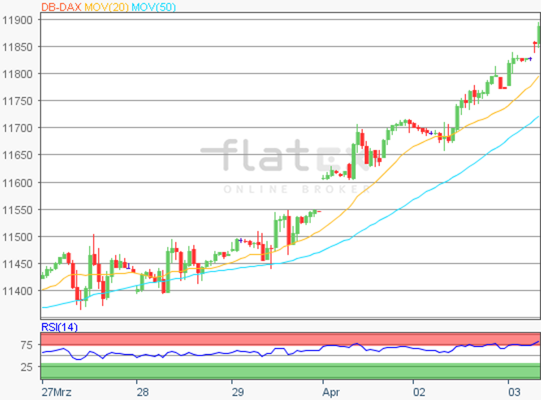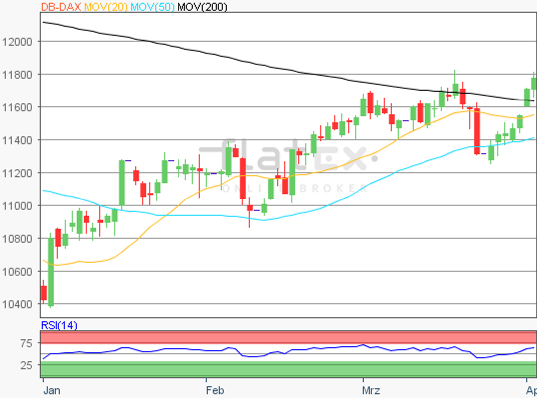 Der Start in das neue Quartal ist bis dato geglückt. Der Deutsche Aktienindex konnte nach dem satten Kursplus vom Montag auch am Dienstag noch einmal nachlegen. Via Xetra schloss der DAX mit einem Kursgewinn von 0,62 Prozent bei 11.754,79 Punkten.