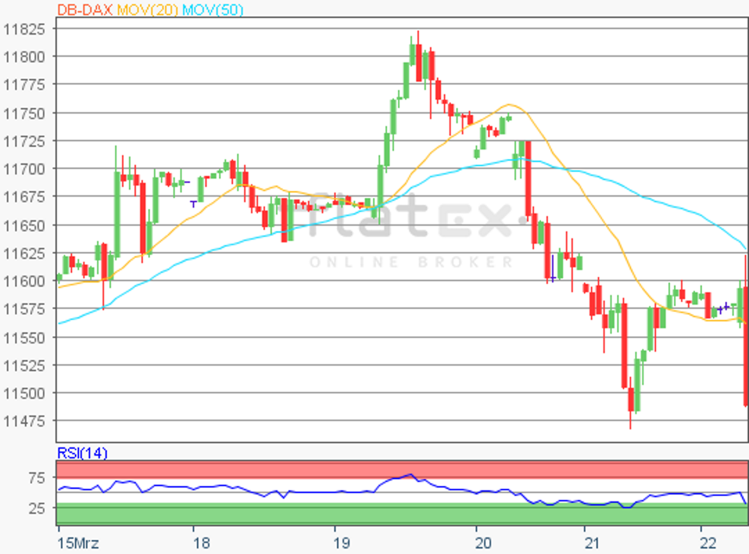 Der Deutsche Aktienindex setzte seine Abwärtsbewegung fort und schloss den dritten Tag in Folge mit einem Kursverlust. Am Freitag notierte der DAX mit einem Minus von 1,61 Prozent und einem Schlusskurs von 11.364,17 Punkten.