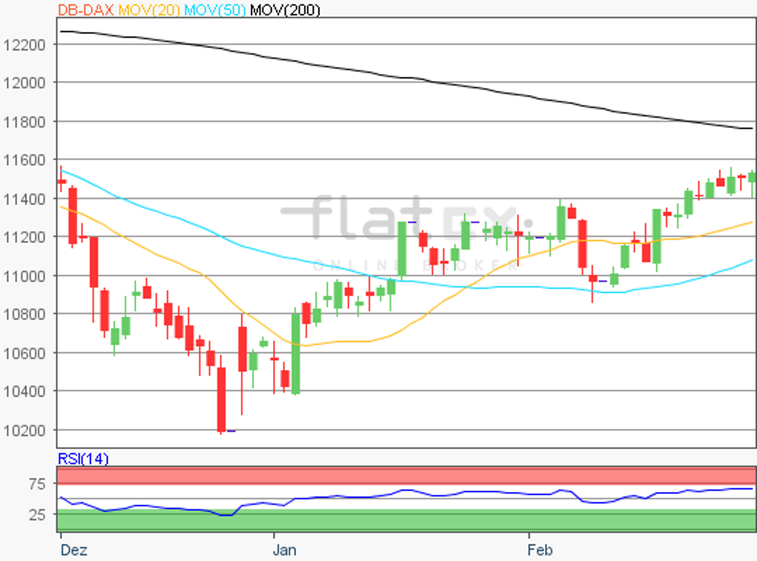 Der Deutsche Aktienindex schob sich bereits die gesamte Handelswoche in einer Handelspanne von 141 Indexpunkten überwiegend seitwärts. Am Donnerstag schloss der deutsche Leitindex mit einem Plus von 0,25 Prozent bei 11.515,64 Punkten.