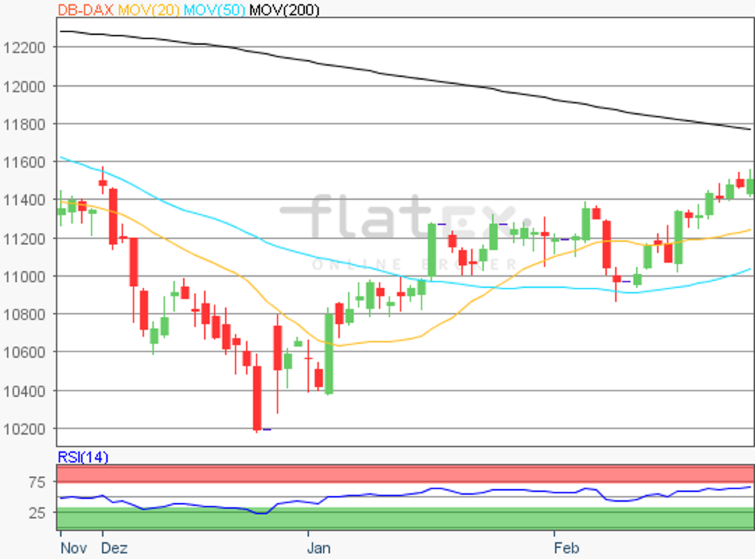 Zur Charttechnik: Der Deutsche Aktienindex startete mit einem soliden Auftakt in die neue Börsenwoche und beendete den Montag mit einem Plus von 0,42 Prozent bei 11.505,39 Punkten.