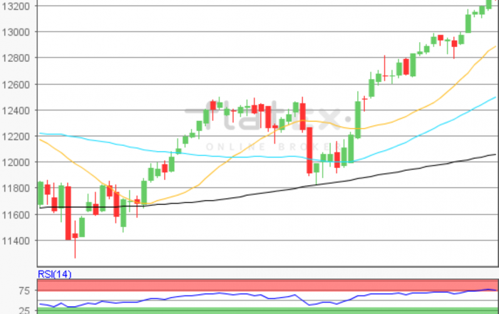 Der Deutsche Aktienindex stieg auch am Donnerstag nochmals an und konnte somit den fünften Handelstag in Folge zulegen. Zum Xetra-Schluss notierte der DAX mit einem Kursplus von 0,83 Prozent bei 13.289,46 Punkten. Das Handelsvolumen via Xetra und Börse Frankfurt betrug rund 4,77 Mrd. Euro.