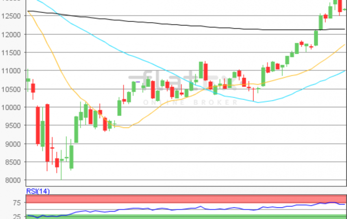 Der Deutsche Aktienindex markierte zum Wochenbeginn seit dem Crash mit 12.913,13 Punkten ein neues Verlaufshoch und schloss via Xetra mit einem leichten Kursverlust von 0,22 Prozent bei 12.819,59 Punkten.