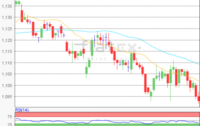 Das Währungspaar EUR/USD bewegt sich nochmals auf die beiden Mehrjahrestiefs von 1,0925 und 1,0926 zu.