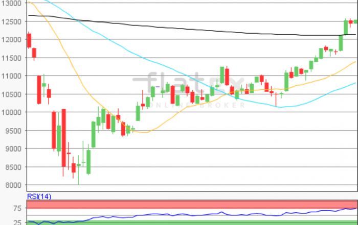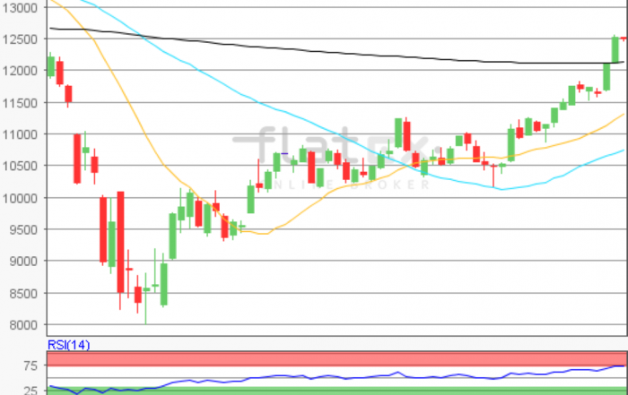 Die Hausse der letzten Wochen setzte sich auch am Mittwoch unvermindert fort. Wieder konnte der Deutsche Aktienindex stark zulegen. Zum Xetra-Handelsende notierte der DAX mit einem kräftigen Plus von 3,88 Prozent bei 12.487,36 Punkten.