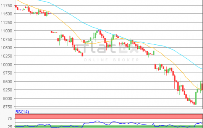 Der Crash an den Aktienmärkten setzte sich den vierten Tag in Folge nicht nur fort, sondern beschleunigte sich sogar noch. Der Deutsche Aktienindex fiel um 1.277,55 Punkte oder um 12,24 Prozent auf 9.161,13 Punkte.