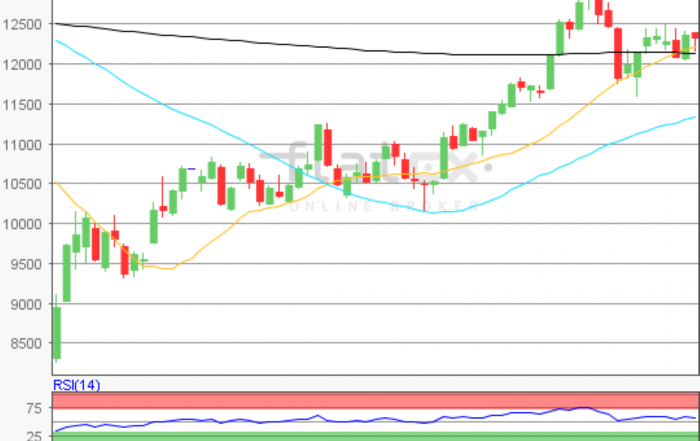 Der Deutsche Aktienindex startete mit leichten Abgaben in die neue Börsenwoche. Zum Xetra-Handelsende notierte der DAX mit einem Kursabschlag von 0,55 Prozent bei 12.262,97 Punkten.