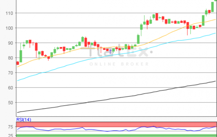 Die Aktie des SDAX-Konzerns Varta notierte am 05. November 2019 auf einem letzten Zwischenhoch von 109,80 Euro.