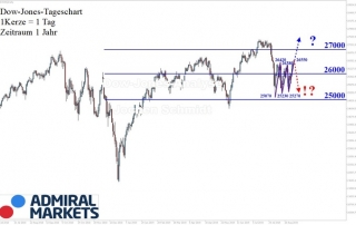 Dow Jones Analyse: Leider ist mit Handelsschluss keine nachhaltige Überschreitung der ehemaligen Hochs gelungen, weshalb es um so wichtiger für den Fortbestand des neuen Aufwärtstrends wäre, dass sich die Kurse über dem Bereich 26.550-26.420-26.380 halten.