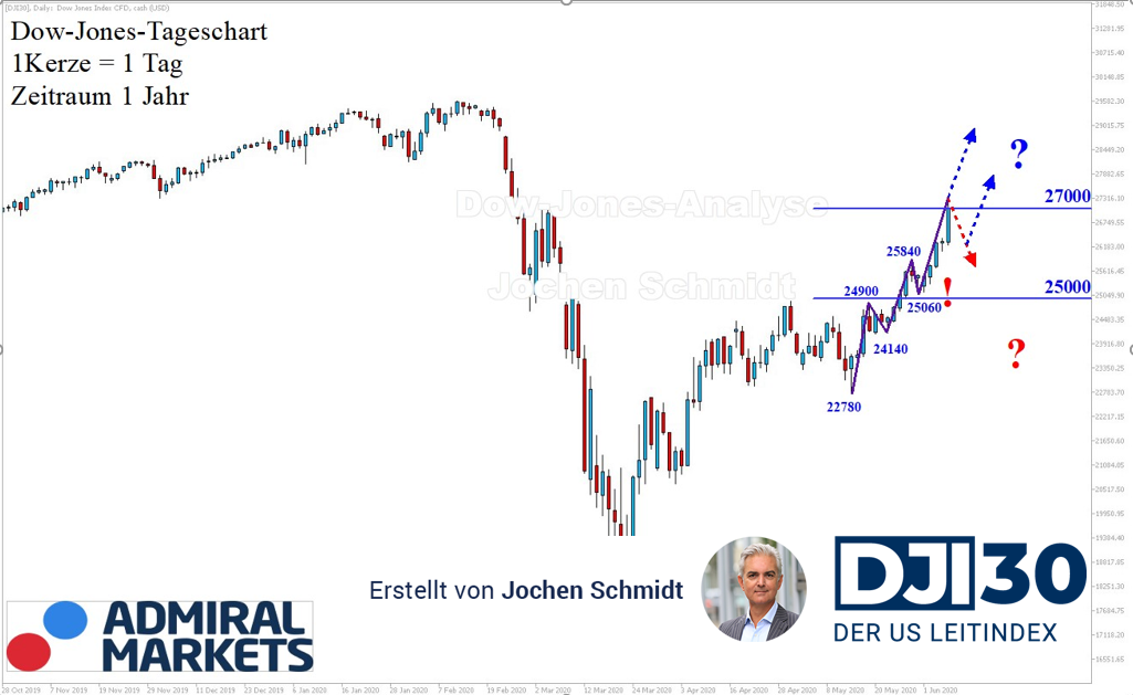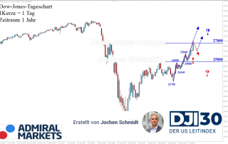 Dow Jones Analyse: Der Aufwärtstrend im Dow Jones Index ist weiterhin intakt; letzt Woche hat der Dow 2.000 Punkte gen Norden gemacht. - Chartanalyse