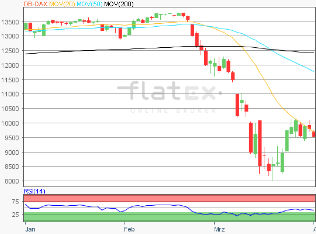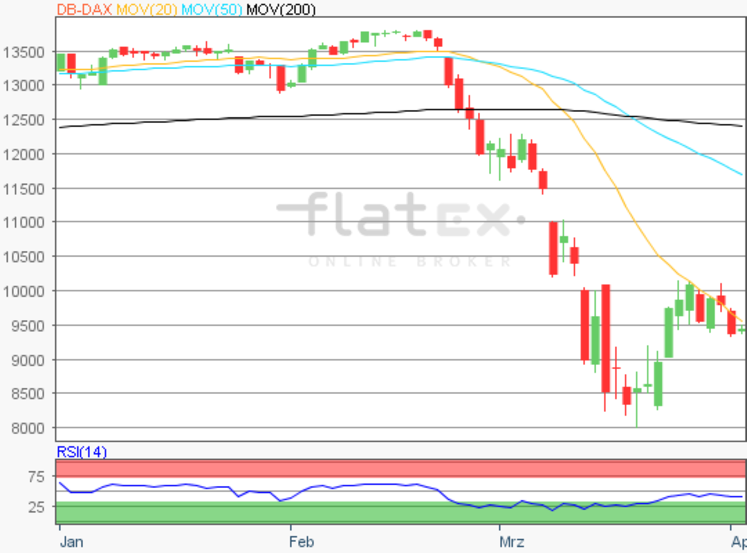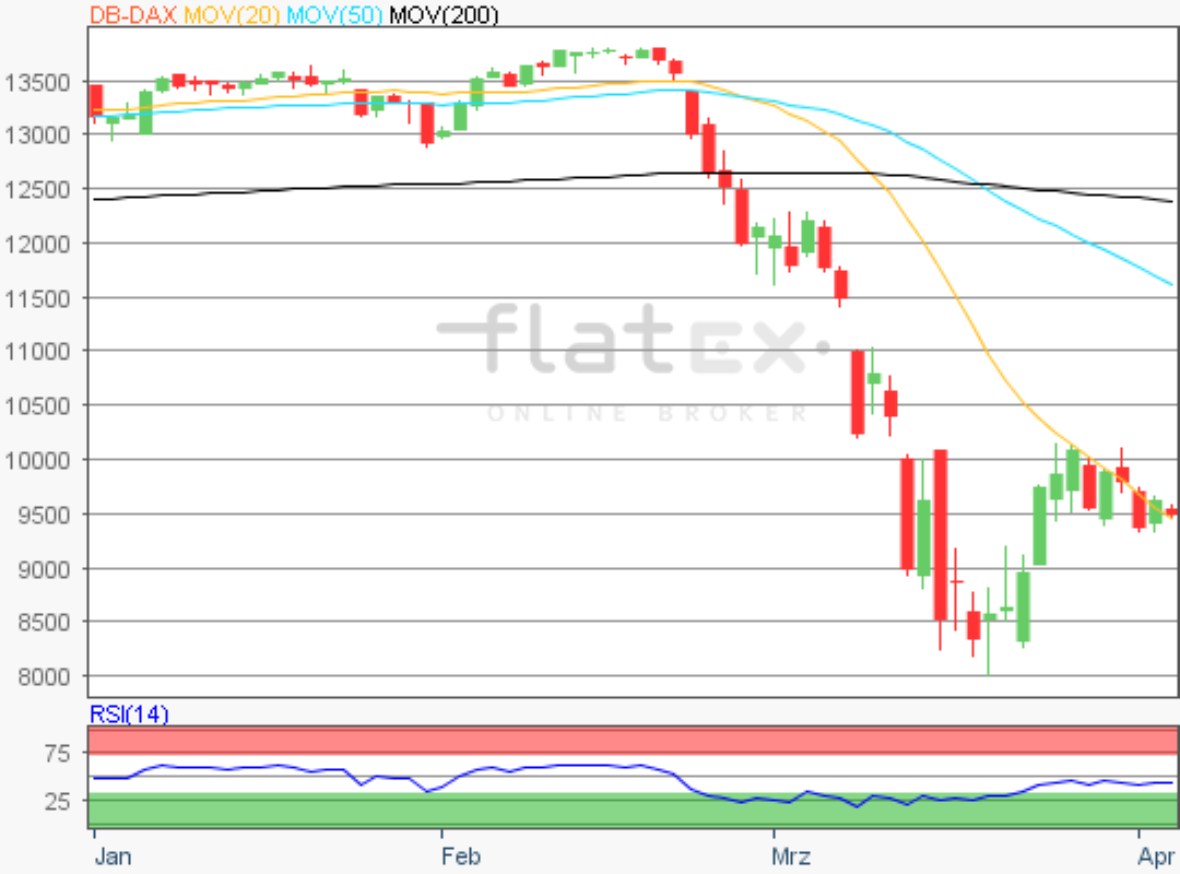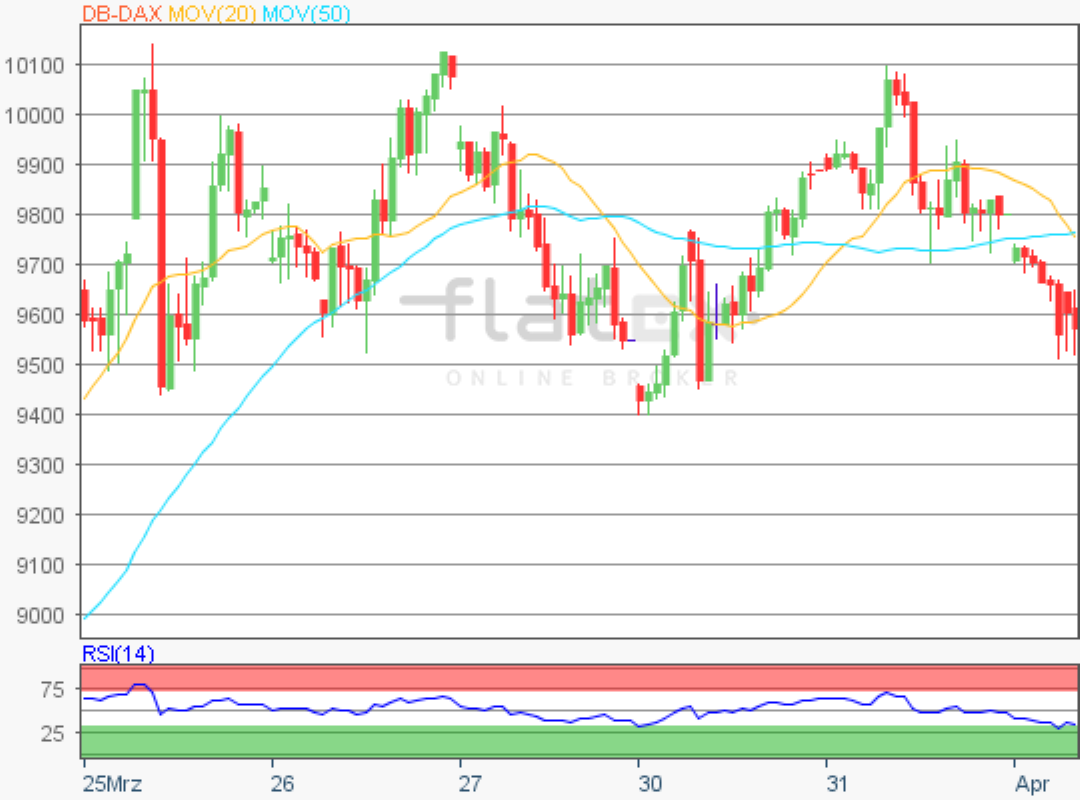 Der Deutsche Aktienindex verlor am Mittwoch kräftig und schloss via Xetra mit einem Kursverlust von 3,94 Prozent bei 9.544,75 Punkten. Das Handelsvolumen via Xetra und Börse Frankfurt betrug rund 4,50 Milliarden Euro.