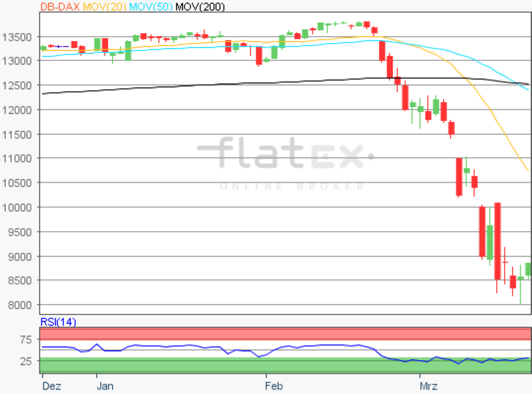 Der DAX ging am Montagmorgen der vergangenen Handelswoche bei 8.760 Punkten, mit einem deutlichen GAP down, in den vorbörslichen Handel.
