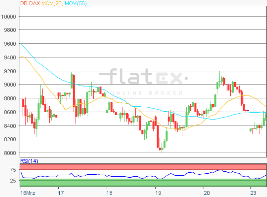 Der Deutsche Aktienindex konnte sich am Donnerstag sichtlich stabilisieren und ging mit einem Kursgewinn von 2,00 Prozent bei 8.610,43 Punkten via Xetra aus dem Handel. Das Handelsvolumen via Xetra und Börse Frankfurt betrug rund 6,43 Milliarden Euro.