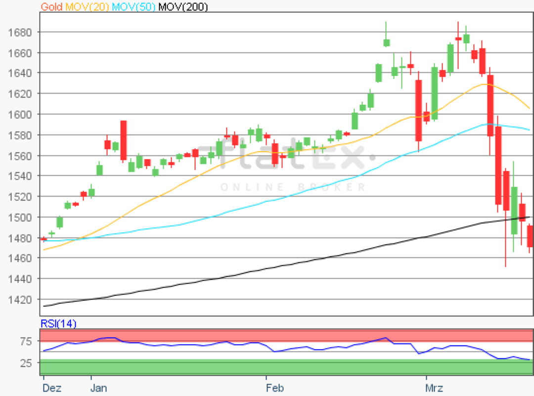 Der Preis für eine Feinunze Gold brach in den letzten zwei Handelswochen sehr stark ein. Auf der einen Seite wurden Kursgewinne in Gold offenbar in großem Stil verkauft, um Gewinne mitzunehmen und gegebenenfalls auch Kursverluste am Aktienmarkt aufzufangen.