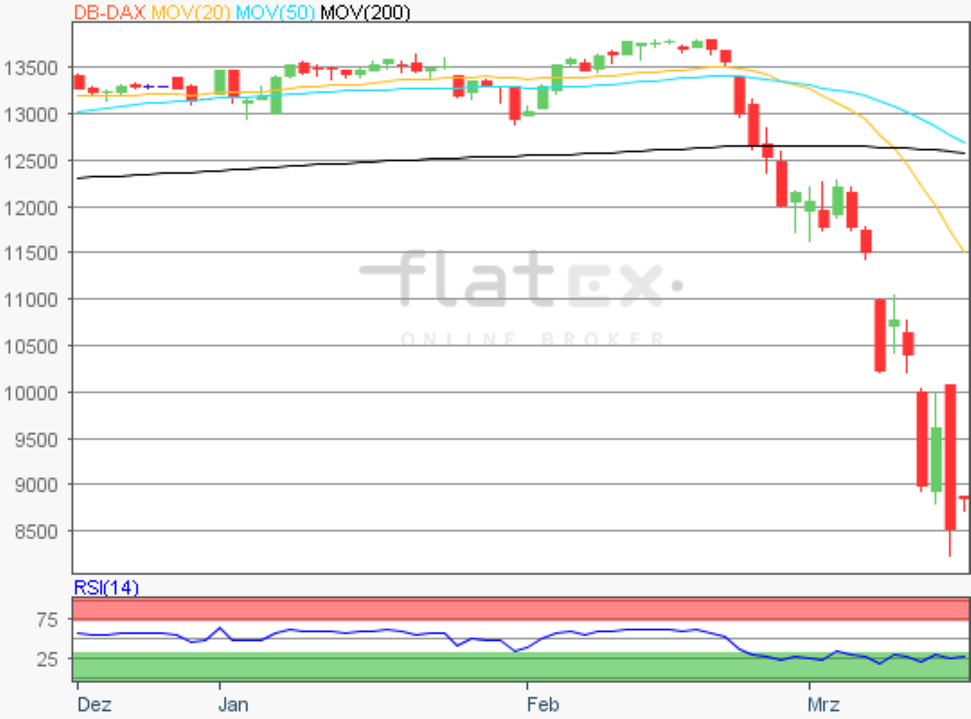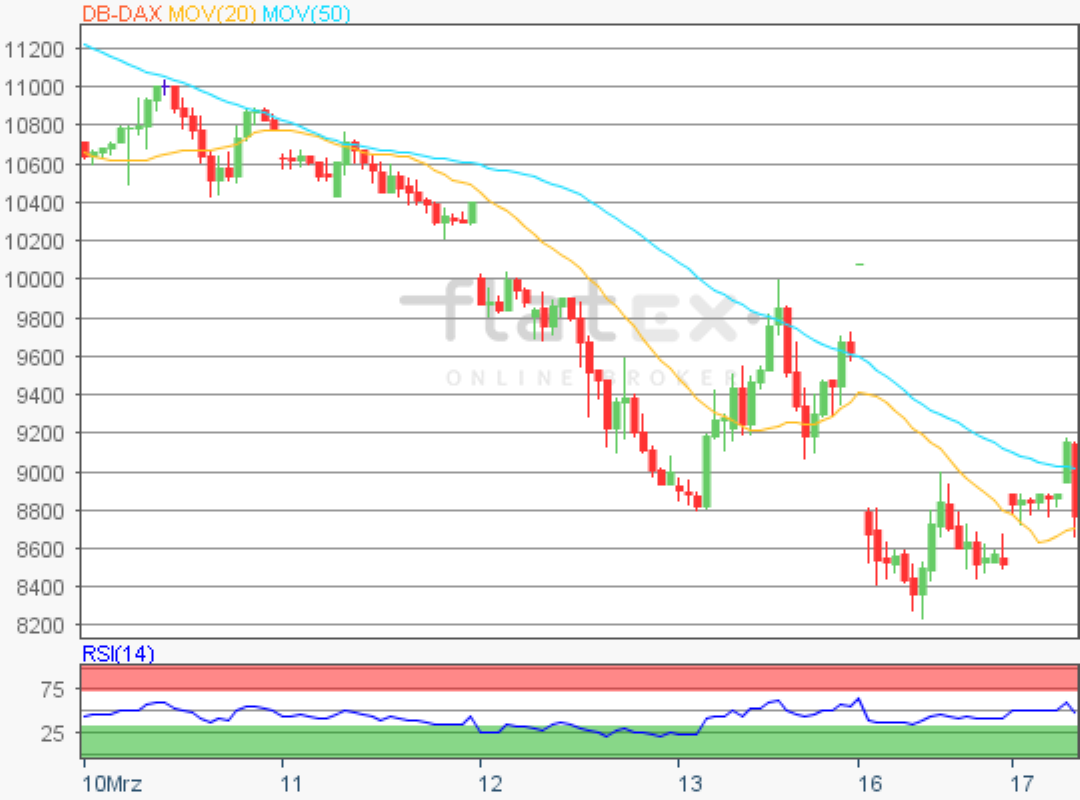 Volatilität hat offenbar einen neuen Namen, nämlich den des „DAX“. Vom Tagestief von 8.423,56 Punkten bis hinaus zum Tageshoch von 9.145,93 Punkten lag die Handelsspanne am Dienstag bei wieder einmal enormen 722,37 Punkten