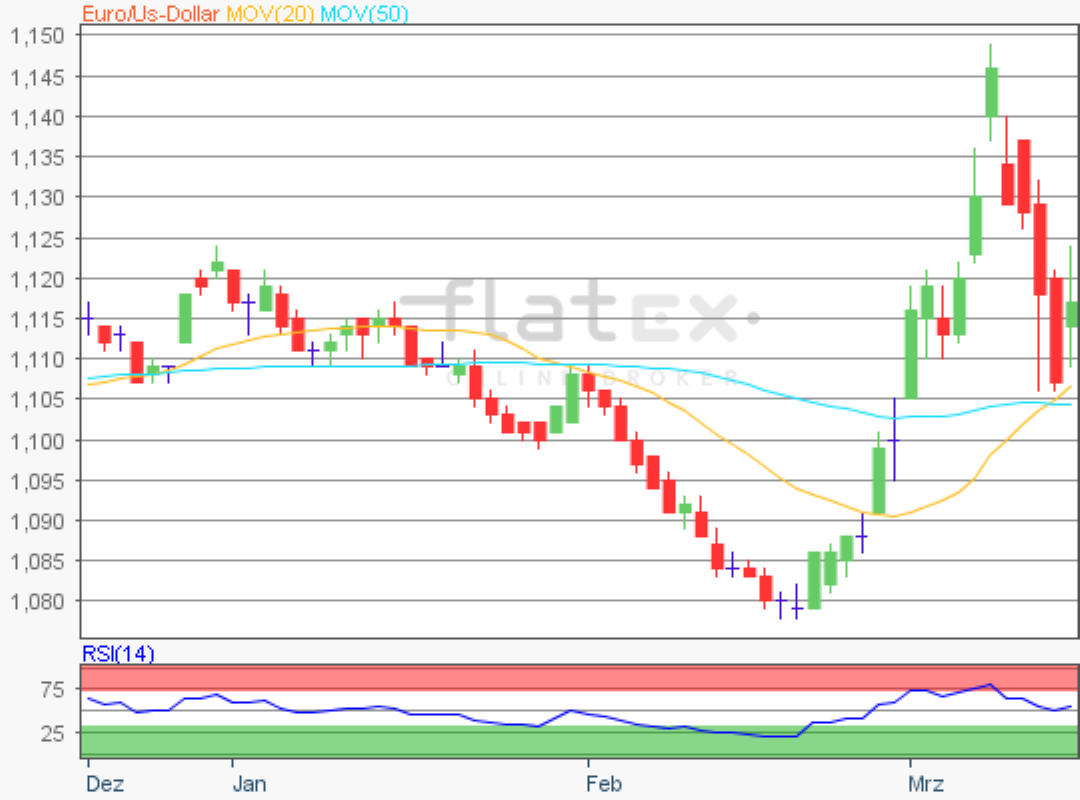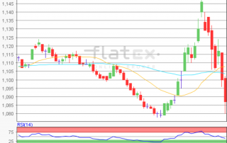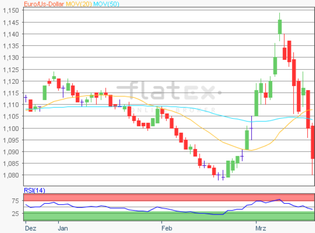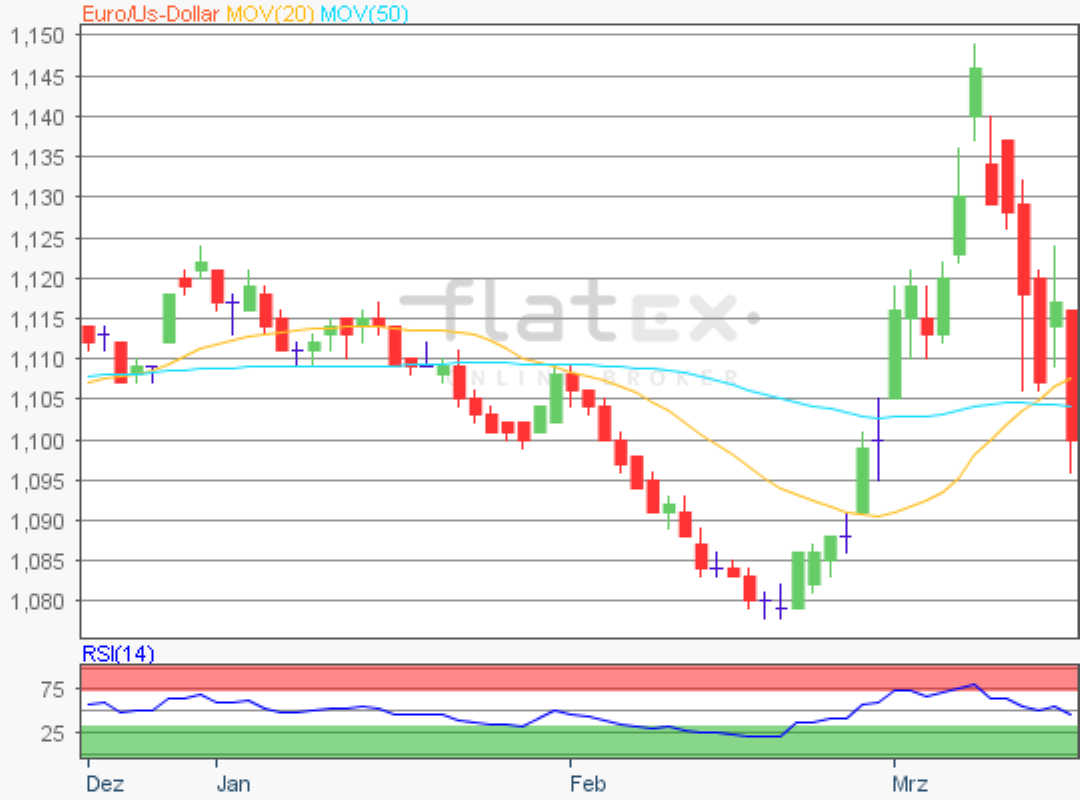 Das Währungspaar EUR/USD wurde exakt zweimal an der Unterstützung von 1,1052 gehalten und es kam zu Zwischenerholungen. Nun hielt die 1,1052 beim dritten Test nicht mehr und es wurde die neue Unterstützung von 1,0947 angelaufen.