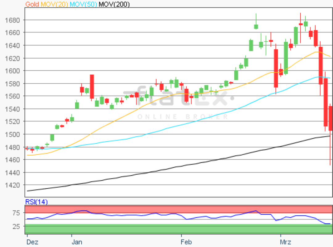 Der Preis für eine Feinunze Gold kam seit dem Top vom 09: März regelrecht unter die Räder. Seitdem ist der Preis für Gold in der Spitze bis zu 252 US-Dollar je Unze gefallen.