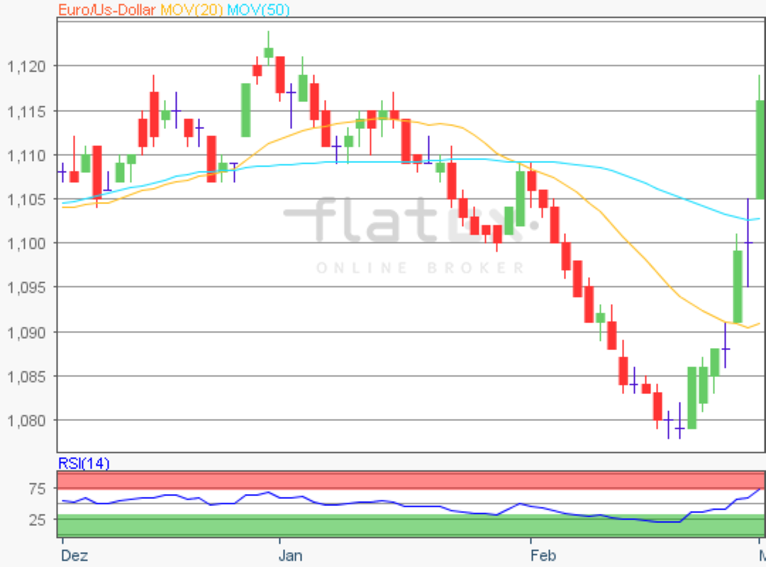 Das Währungspaar EUR/USD schob sich rund um die überraschende Fed-Aktion kurzfristig recht schnell über die Marke von 1,1200.
