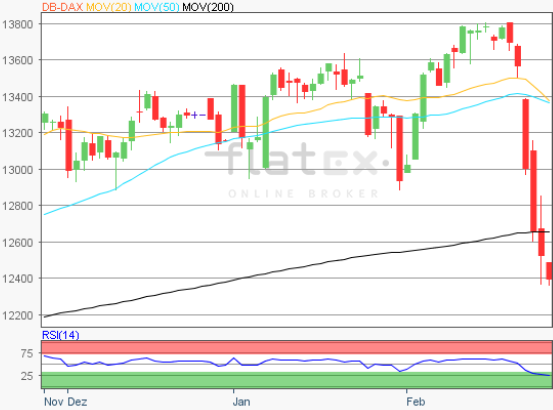 Der Deutsche Aktienindex vollzog auch am Donnerstag einmal mehr eine Achterbahnfahrt. Zum Xetra-Handelsende notierte der DAX mit einem hohen Abschlag von 3,19 Prozent bei 12.267,46 Punkten.