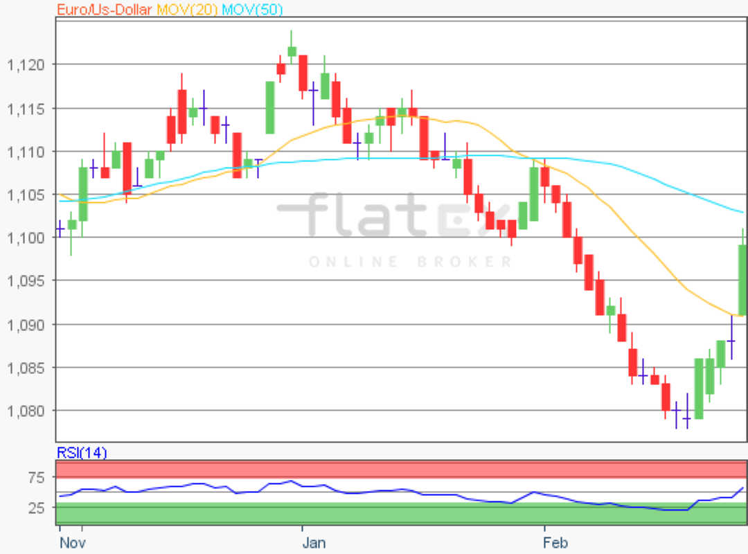 Das Währungspaar EUR/USD drückte es nach dem weiteren Ausverkauf an den Aktienmärkten weiter aufwärts.