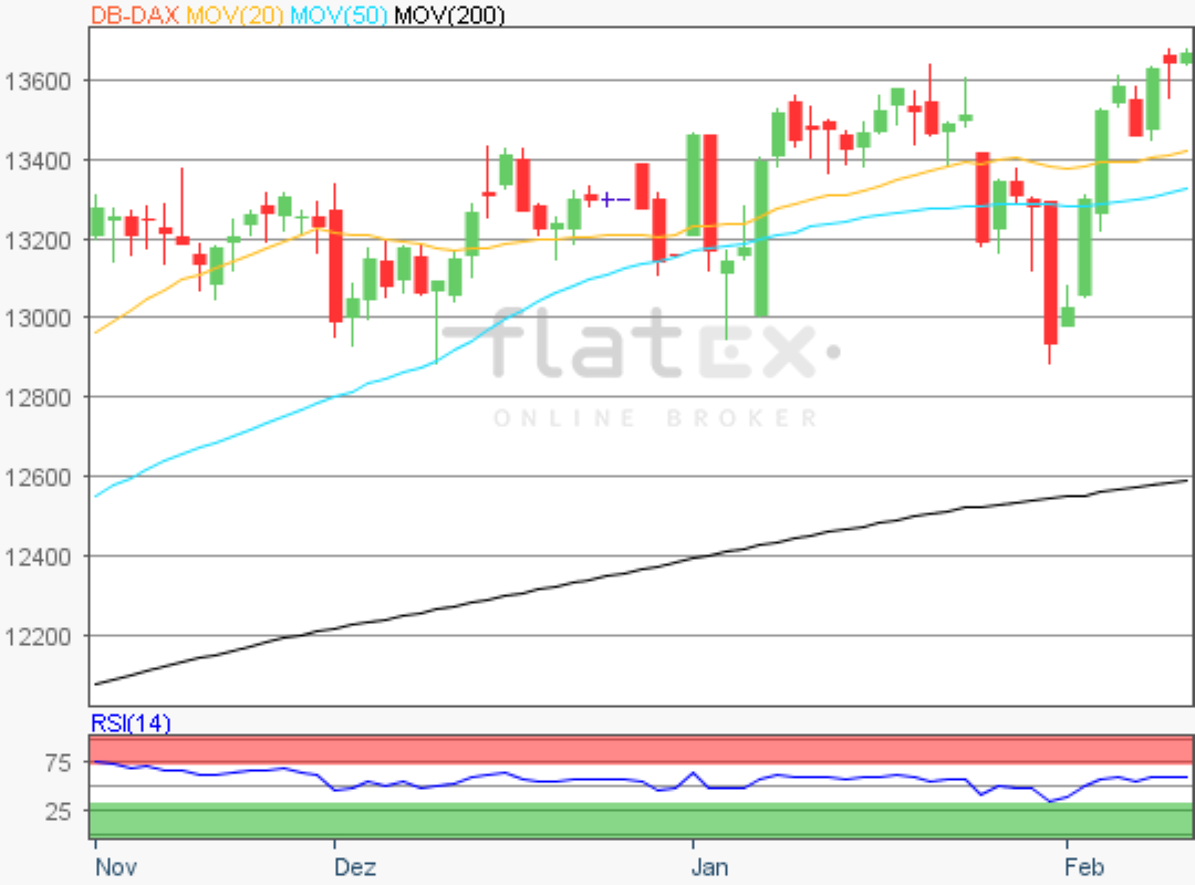 Der Deutsche Aktienindex konnte am Dienstag mit 13.668,43 Punkten ein neues Allzeithoch ausbilden. Danach ging es bis zum Xetra-Handelsende nur wenig abwärts.