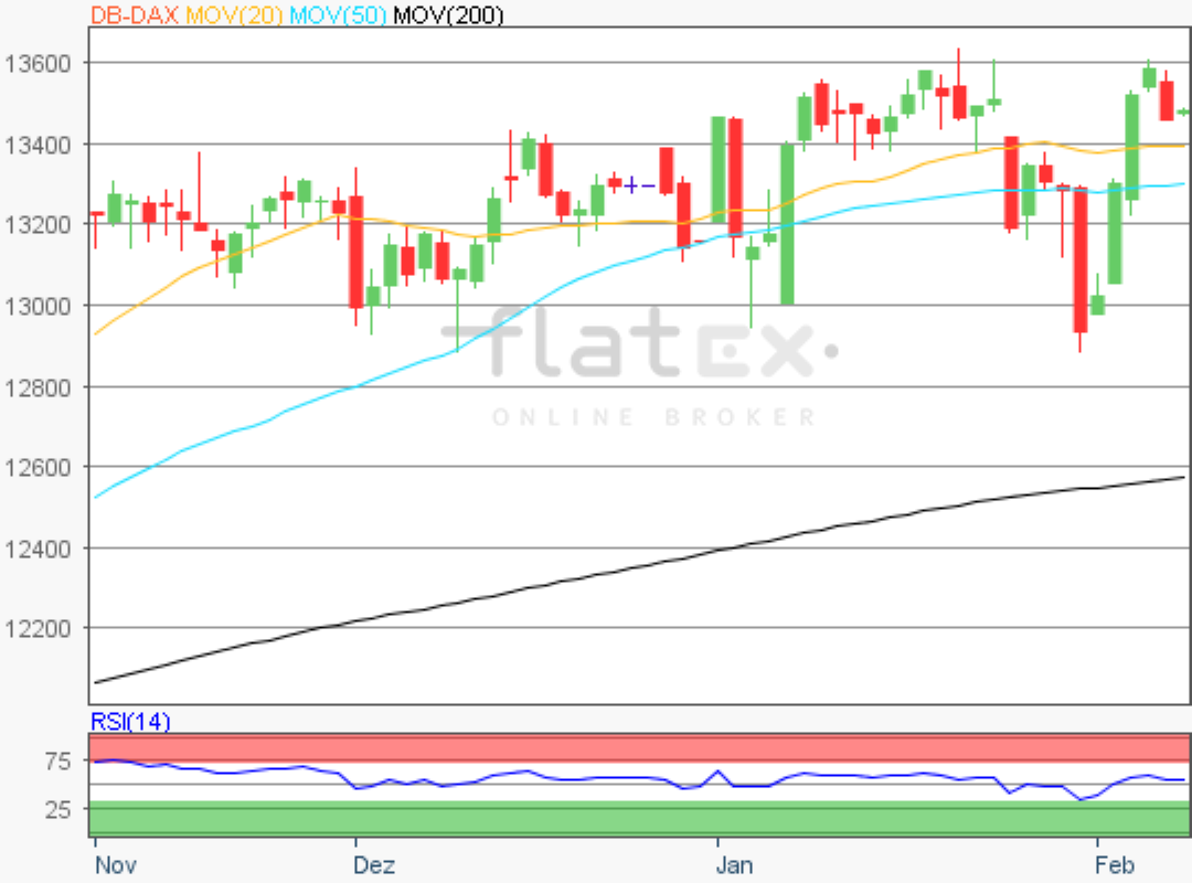 Der DAX ging am Montagmorgen der vergangenen Handelswoche bei 13.020 Punkten in den vorbörslichen Handel. Der Index notierte damit 360 Punkte unter der ersten vorbörslichen Notierung der Vorwoche, aber 14 Punkte über dem Wochenschluss am Freitag der Vorwoche. Der Index bewegte sich am Montag zunächst in einer engen Box seitwärts.
