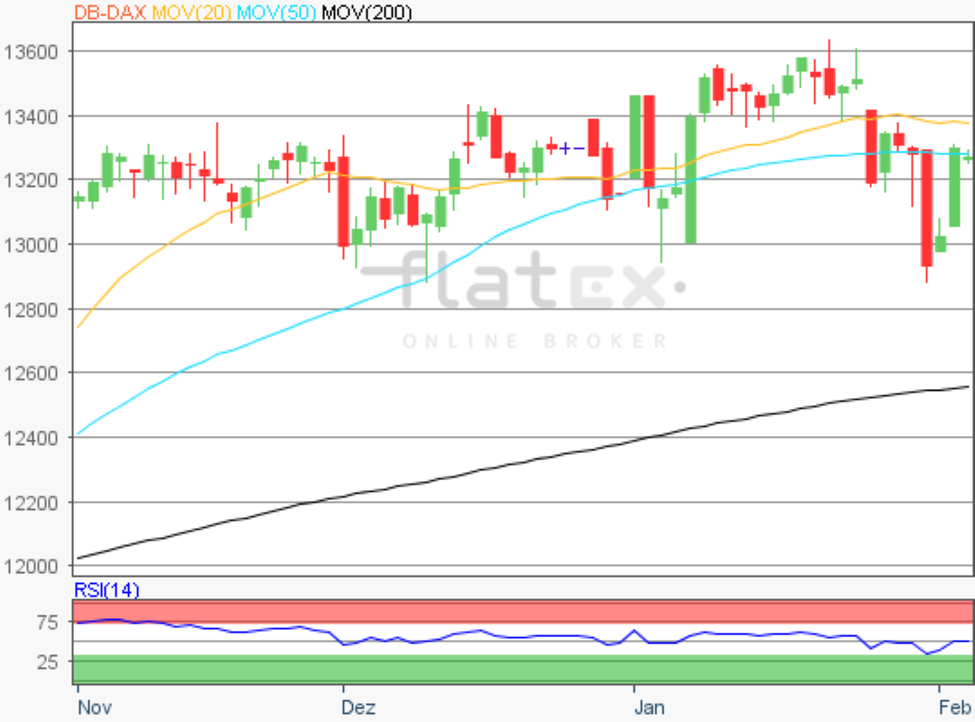 Der Deutsche Aktienindex konnte am Dienstag mit einem kräftigen Kurszuwachs von 1,81 Prozent und einem Xetra-Schlussstand von 13.281,74 Punkten jüngst verloren gegangenes Terrain wieder zurückerobern. Das Handelsvolumen via Xetra und Börse Frankfurt betrug rund 3,76 Milliarde Euro.